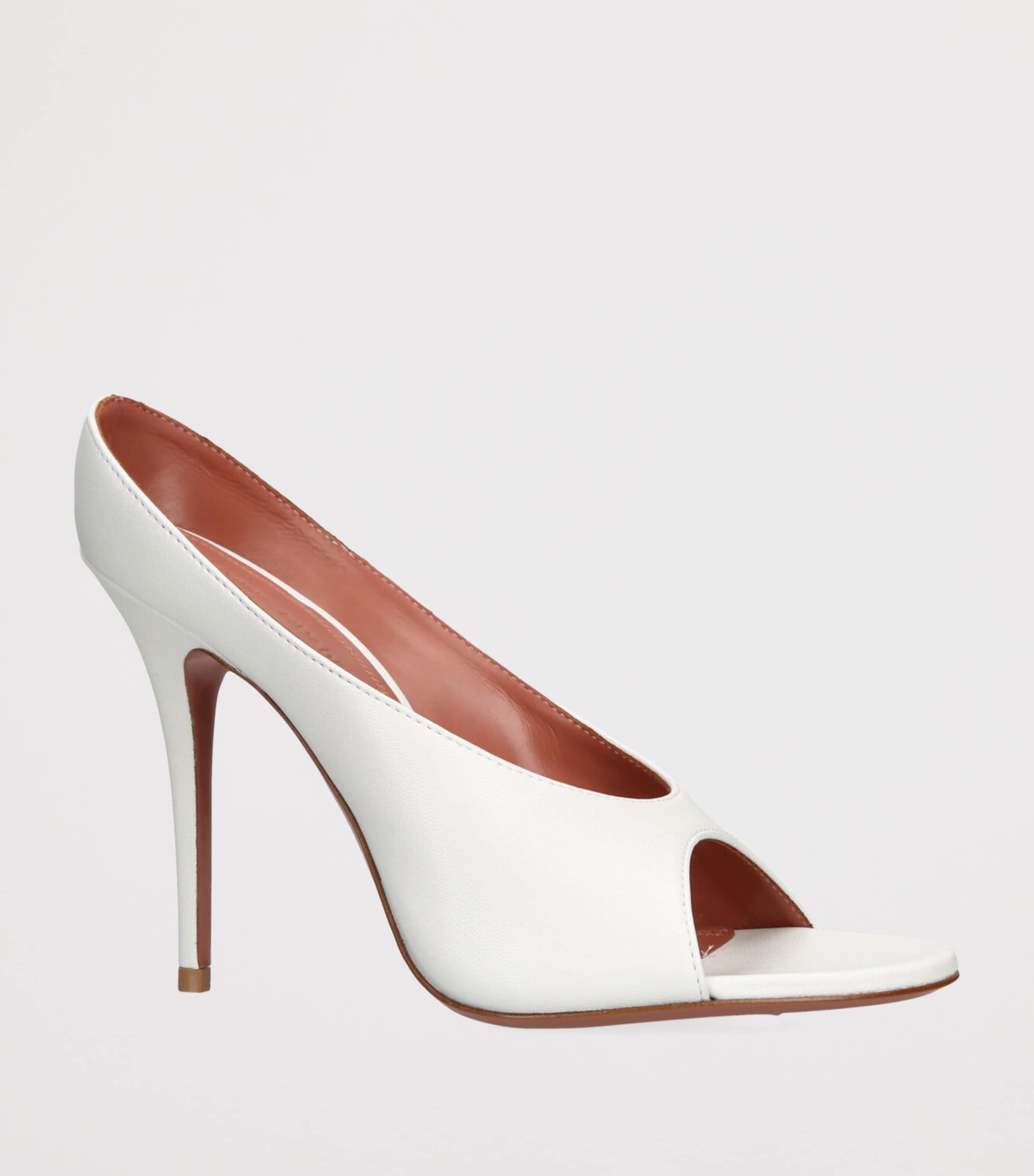 Amina Muaddi Leather Anok Heeled Slipper 105 | Women Shoes | Heels | Sandals | Peep Toe Heels | Designers | Amina Muaddi