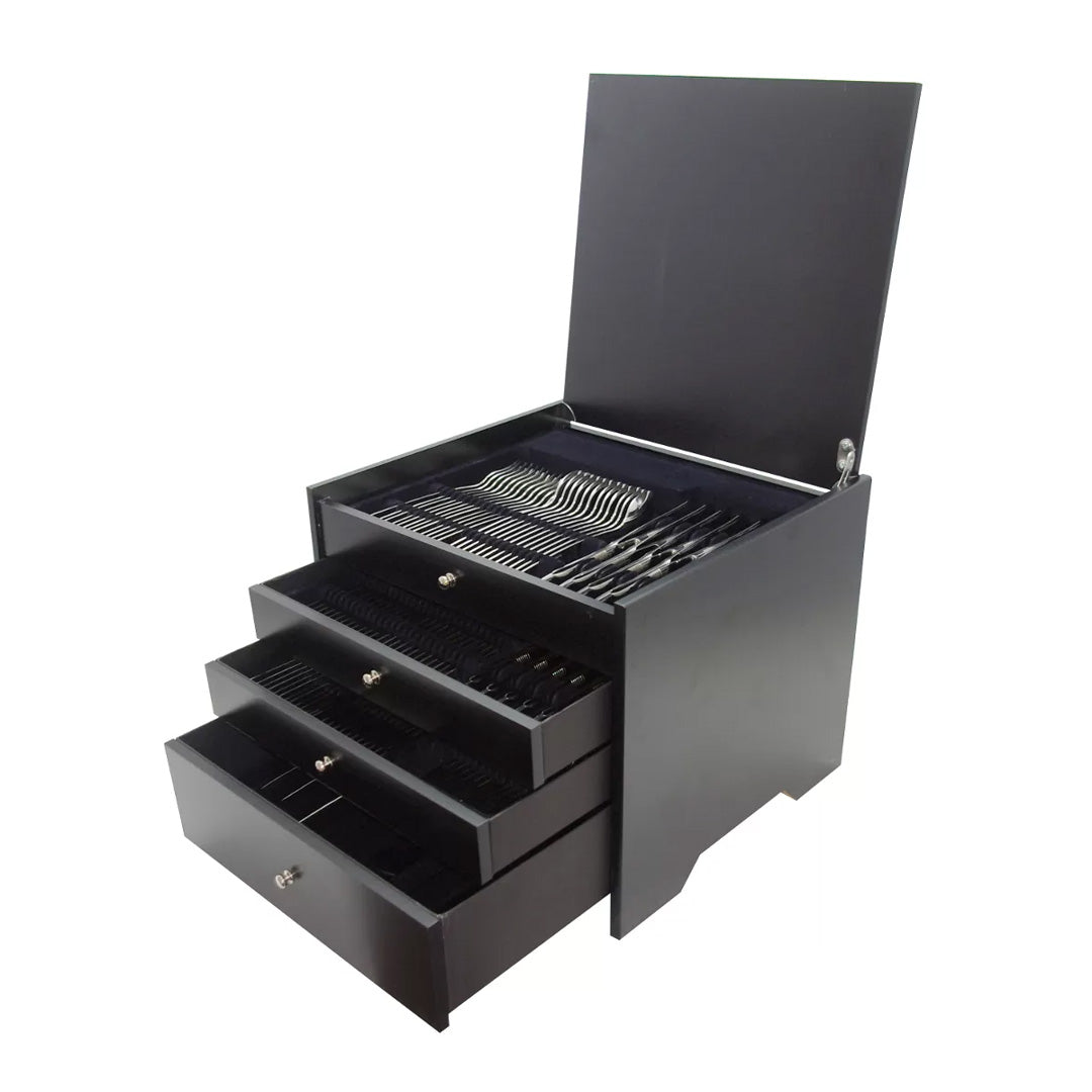 Cristema Chicago 130-Piece Cutlery Set with Wood Cube Box